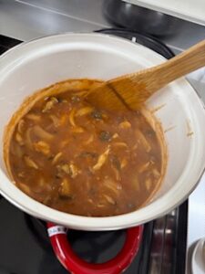 メニューは煮込みハンバーグ、白菜スープ&デザート。 子ども達はハンバーグの形を手でハート型にしたり星型にしたり~😊 煮込んだらせっかくの♡も☆もわからなくなってしまいました😁 今回は池上本...